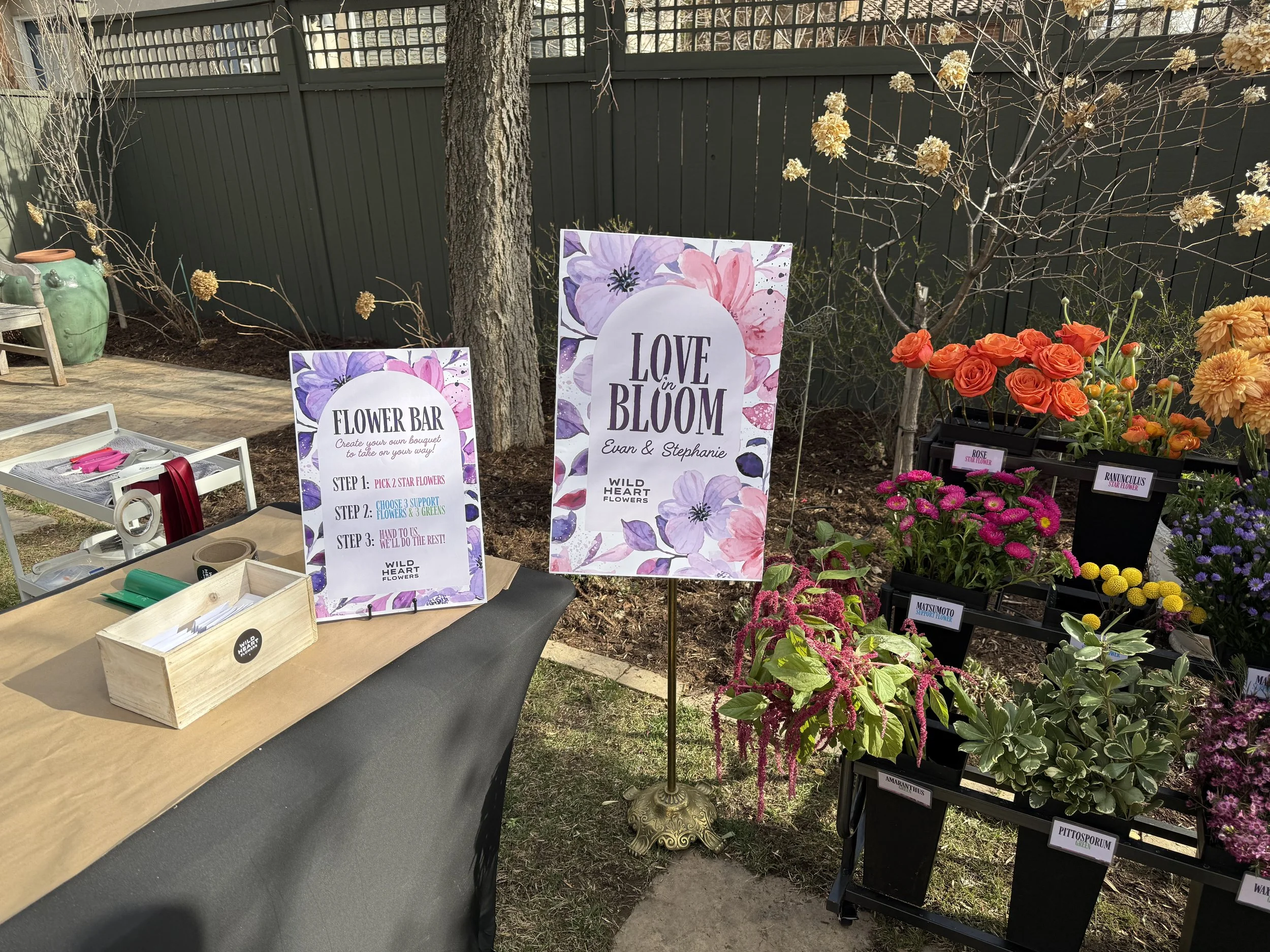 A flower bar is a build-your-own bouquet experience where guests get to play with fresh, seasonal blooms and create something beautiful to take home. Think of it as a hands-on, joy-filled moment where people choose their favorite stems, design at their own pace, and walk away with a custom arrangement that feels uniquely them.